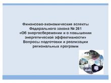 Финансово-экономические аспекты Федерального закона 261 Об энергосбережении