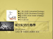 u 業生態學 Industrial Ecology u事業生態學 Business Ecology u藍海策略