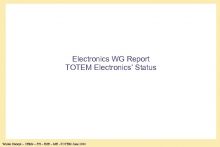 Electronics WG Report TOTEM Electronics Status Walter Snoeys