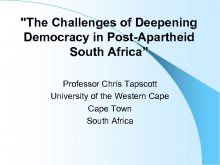 The Challenges of Deepening Democracy in Post-Apartheid South
