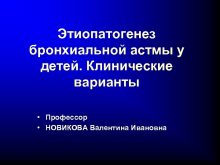 Этиопатогенез бронхиальной астмы у детей Клинические варианты