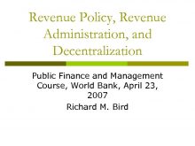 Revenue Policy Revenue Administration and Decentralization Public Finance