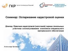 Семинар Оспаривание кадастровой оценки Доклад Практика кадастровой массовой