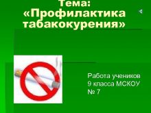 Тема Профилактика табакокурения Работа учеников 9 класса МСКОУ