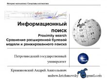 Интернет-математика Спецглавы математики Информационный поиск Proximity search