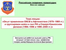 Российская академия правосудия Военная кафедра Тема лекции Опыт
