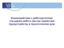 Взаимодействие с работодателями специфика работы Центра содействия трудоустройству