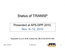 Status of TRANSP Presented at APS-DPP 2010 Nov
