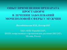 ОПЫТ ПРИМЕНЕНИЯ ПРЕПАРАТА ПРОСТАНОРМ В ЛЕЧЕНИИ ЗАБОЛЕВАНИЙ МОЧЕПОЛОВОЙ