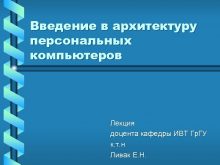 Введение в архитектуру персональных компьютеров Лекция доцента кафедры