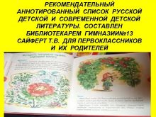 РЕКОМЕНДАТЕЛЬНЫЙ АННОТИРОВАННЫЙ СПИСОК РУССКОЙ ДЕТСКОЙ И СОВРЕМЕННОЙ ДЕТСКОЙ