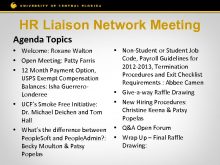 HR Liaison Network Meeting Agenda Topics Welcome