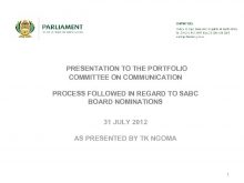 PRESENTATION TO THE PORTFOLIO COMMITTEE ON COMMUNICATION PROCESS