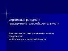 Управление рисками в предпринимательской деятельности Комплексная система управления