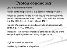 Proton conductors Low-temperature systems water containing systems