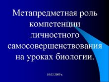 Метапредметная роль компетенции личностного самосовершенствования на уроках биологии