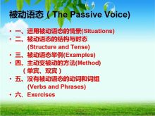 被动语态 The Passive Voice 一 运用被动语态的情景 Situations 二 被动语态的结构与时态 Structure