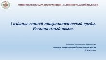 МИНИСТЕРСТВО ЗДРАВООХРАНЕНИЯ КАЛИНИНГРАДСКОЙ ОБЛАСТИ Создание единой профилактической среды