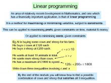 Linear programming An area of relatively recent development