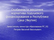 Особенности введения норматива подушевого финансирования в Республике Саха