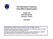 Ten Hardware Features That Affect Optimization COMP 512