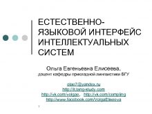 ЕСТЕСТВЕННОЯЗЫКОВОЙ ИНТЕРФЕЙС ИНТЕЛЛЕКТУАЛЬНЫХ СИСТЕМ Ольга Евгеньевна Елисеева доцент
