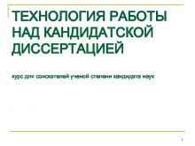 ТЕХНОЛОГИЯ РАБОТЫ НАД КАНДИДАТСКОЙ ДИССЕРТАЦИЕЙ курс для соискателей