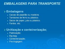 EMBALAGENS PARA TRANSPORTE Ø Embalagens l l Caixas
