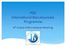 PSD International Baccalaureate Programme 8 th Grade Informational