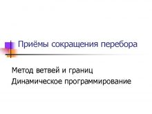 Приёмы сокращения перебора Метод ветвей и границ Динамическое