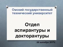 Омский государственный технический университет Отдел аспирантуры и докторантуры