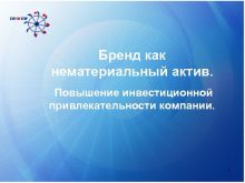Бренд как нематериальный актив Повышение инвестиционной привлекательности компании