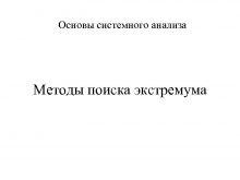 Основы системного анализа Методы поиска экстремума Методы