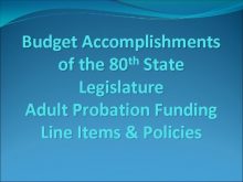 Budget Accomplishments th State of the 80 Legislature