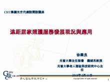 CHT集團光世代建設開設講座 遠距居家照護服務發展現況與應用 徐業良 元智大學主任秘書 機械系教授 元智大學老人福祉科技研究中心主 任 2010年 2月