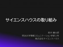 サイエンスハウスの取り組み 鈴木 健太郎 明治大学情報コミュニケーション学部3年 株式会社サイエンスハウス 私の立場
