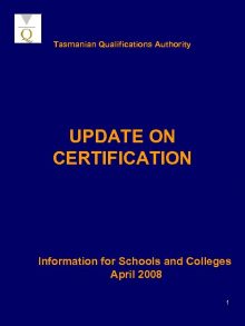 Tasmanian Qualifications Authority UPDATE ON CERTIFICATION Information for