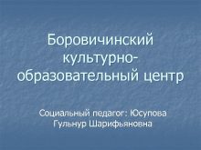 Боровичинский культурнообразовательный центр Социальный педагог Юсупова Гульнур Шарифьяновна
