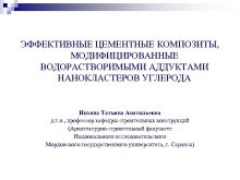 ЭФФЕКТИВНЫЕ ЦЕМЕНТНЫЕ КОМПОЗИТЫ МОДИФИЦИРОВАННЫЕ ВОДОРАСТВОРИМЫМИ АДДУКТАМИ НАНОКЛАСТЕРОВ УГЛЕРОДА