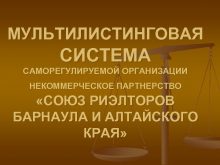 МУЛЬТИЛИСТИНГОВАЯ СИСТЕМА САМОРЕГУЛИРУЕМОЙ ОРГАНИЗАЦИИ НЕКОММЕРЧЕСКОЕ ПАРТНЕРСТВО СОЮЗ РИЭЛТОРОВ