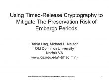 Using Timed-Release Cryptography to Mitigate The Preservation Risk