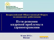 Всероссийский Общественный Форум медицинских работников Пути решения кадровой