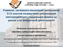 Тюменская область Развитие системного мышления школьников 9 -11