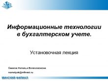 Информационные технологии в бухгалтерском учете Установочная лекция Смоляк