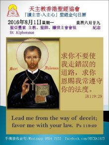 天主教香港聖經協會 讀主言 入主心 聖經金句日曆 2016年 8月1日星期一 農曆六月廿九 聖亞豐索 主教 聖師 贖世主會會祖