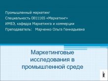 Промышленный маркетинг Специальность 0811165 Маркетинг ИМБЭ кафедра Маркетинга