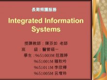 長期照護服務 Integrated Information Systems 授課教師 陳芬如 老師 班 級 醫管碩一