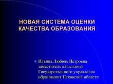 НОВАЯ СИСТЕМА ОЦЕНКИ КАЧЕСТВА ОБРАЗОВАНИЯ Ильина Любовь Петровназаместитель