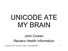 UNICODE ATE MY BRAIN John Cowan Reuters Health