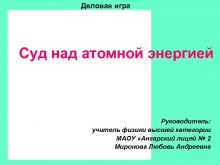 Деловая игра Суд над атомной энергией Руководитель учитель